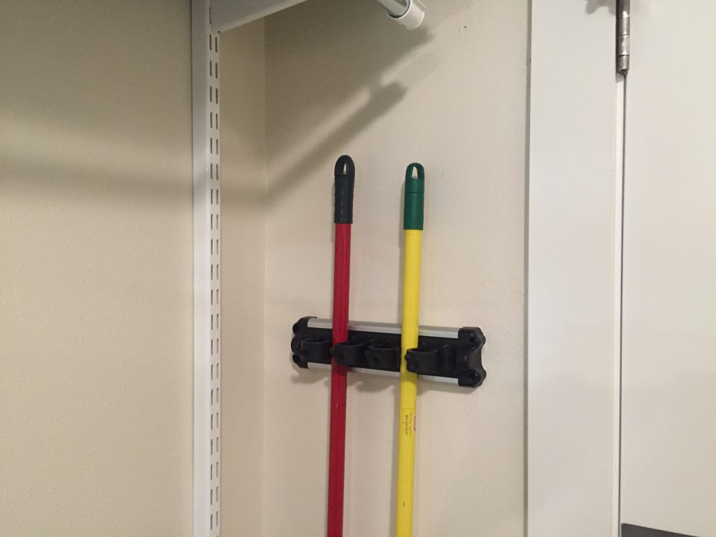 See the picture below, where that push broom handle isn’t falling down through the holder? I LOVE it when things stay put, after I put them back in their home when I’m finished with them.